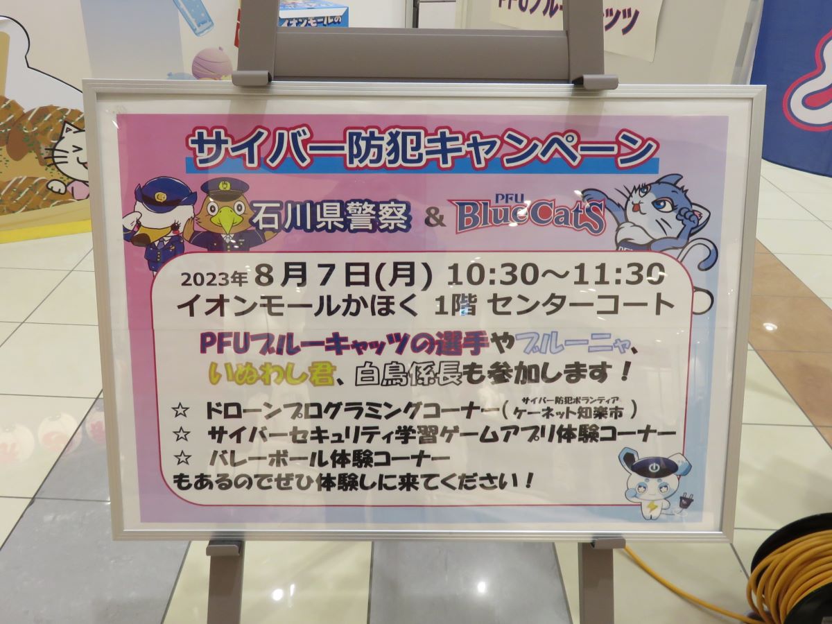 8月7日、イオンモールかほくで開催された石川県警サイバー防犯キャンペーンに参加しました。