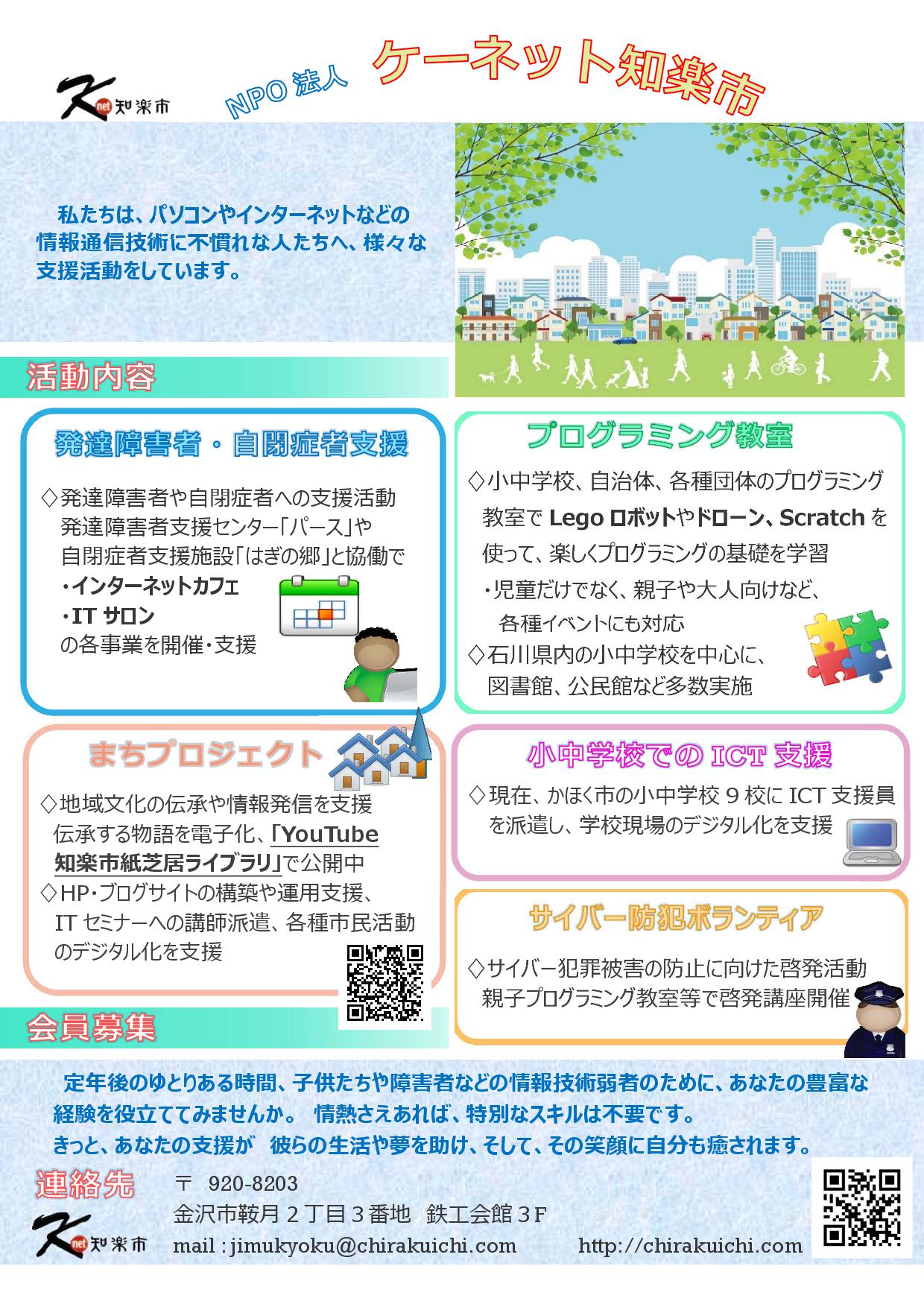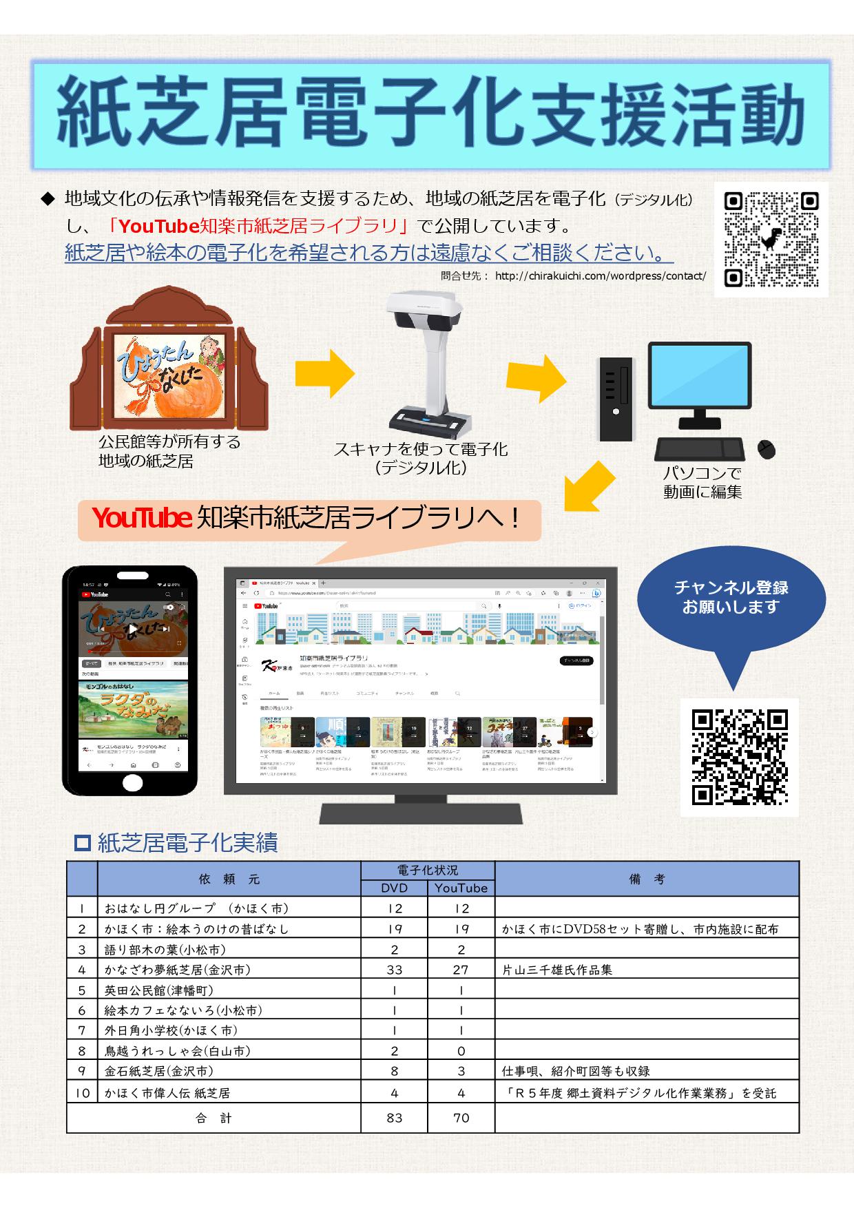 今年も、パネルを使って発達障害者支援活動、紙芝居の電子化、プログラミング教室など知楽市の各活動を紹介し、紙芝居動画(「かほく市偉人伝 紙芝居」「海の豪商 銭屋五兵衛」)を上映しました。