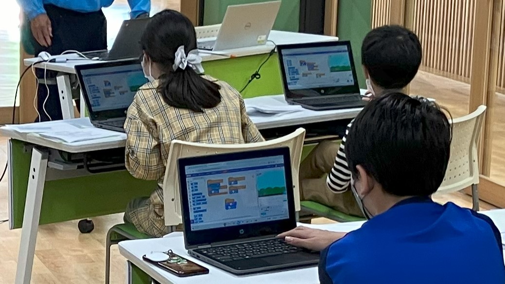 5月25日、あそびの森かほっくるで、IT-CATSかほく推進協議会主催の「Scratch基礎コース」が開催され、小学3~6年生7名が参加しました。