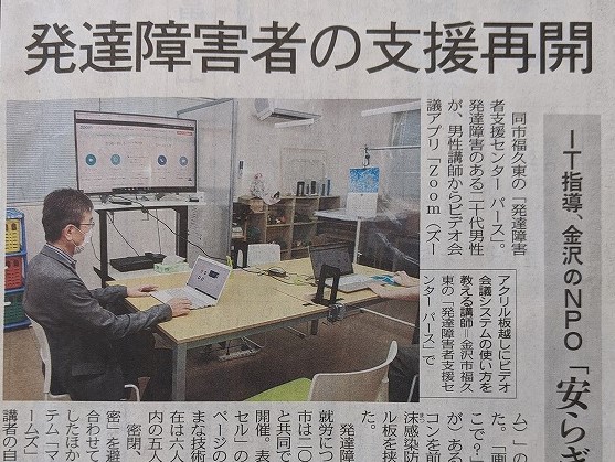 - ZOOMなどを使ったIT交流サロン再開を伝える新聞記事 (北陸中日新聞 2020年7月25日朝刊)