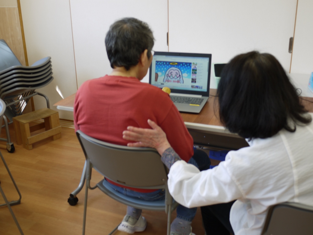 | M.Y. | ペイントアプリを駆使して色々な絵を描いて、誕生日の人にプレゼントしたり、作品展に出展されたりしています。 その他、PCにCDの音楽を取り込んで、カフェの時間、音楽を楽しんだりしています。 |